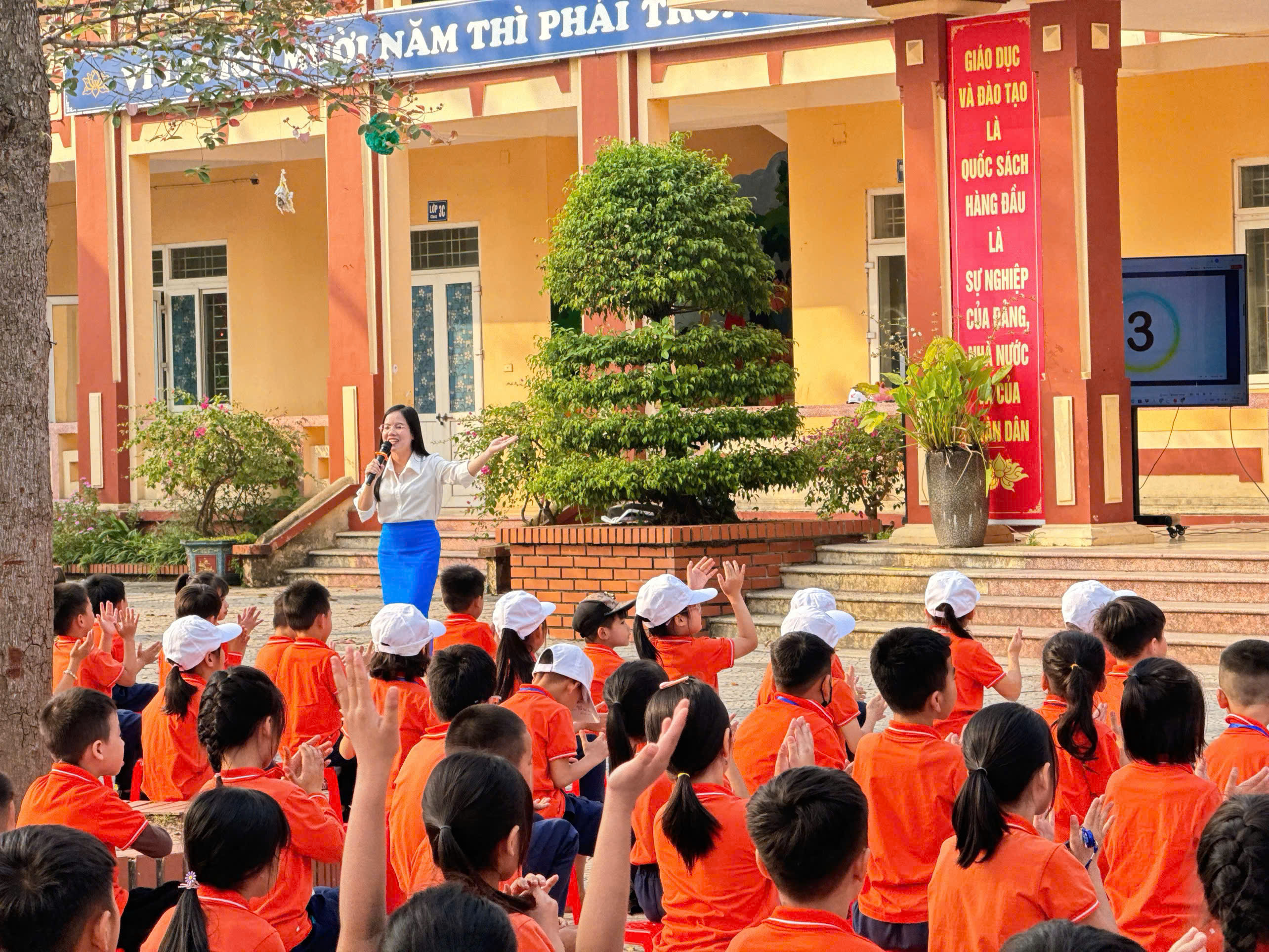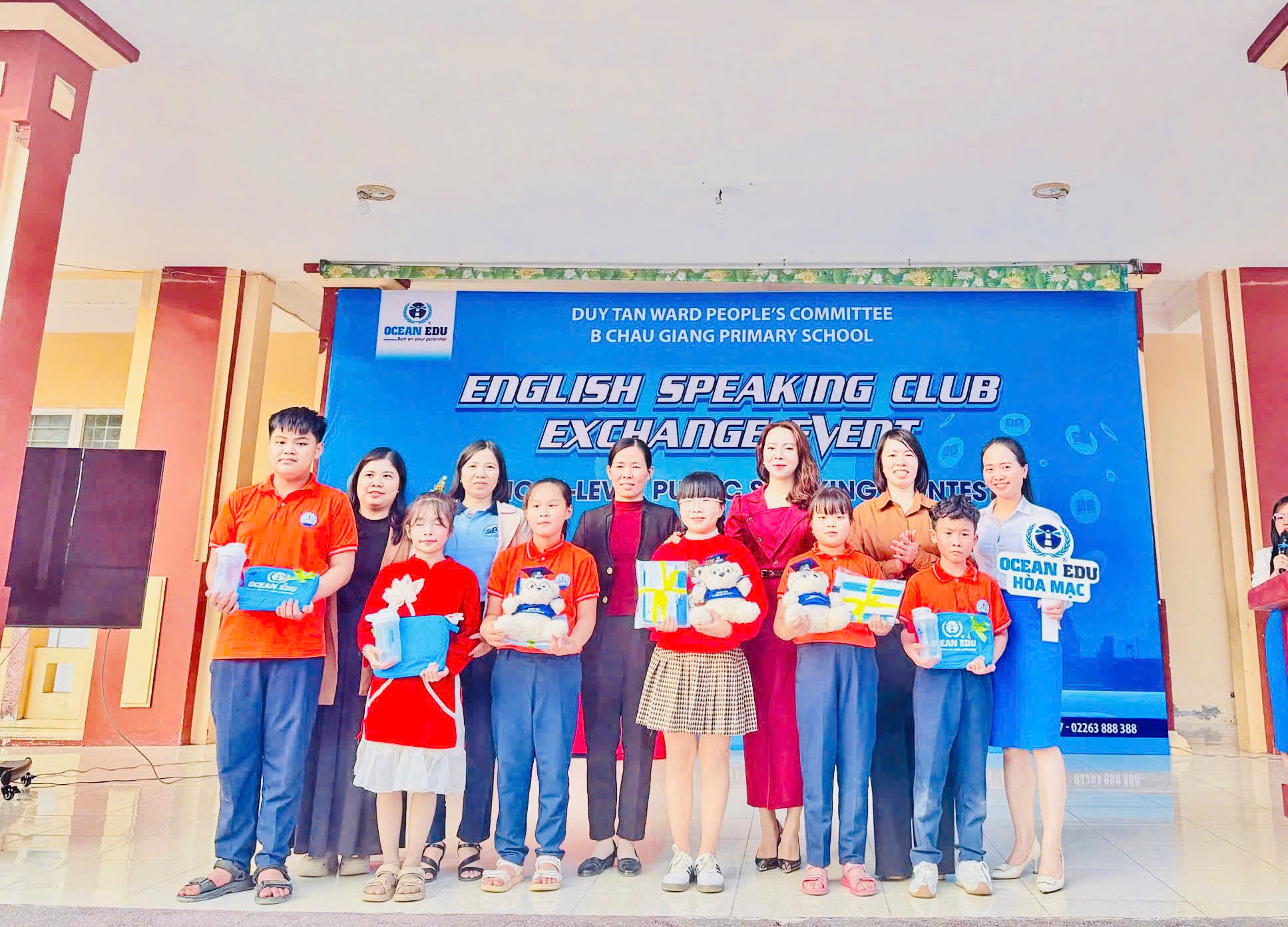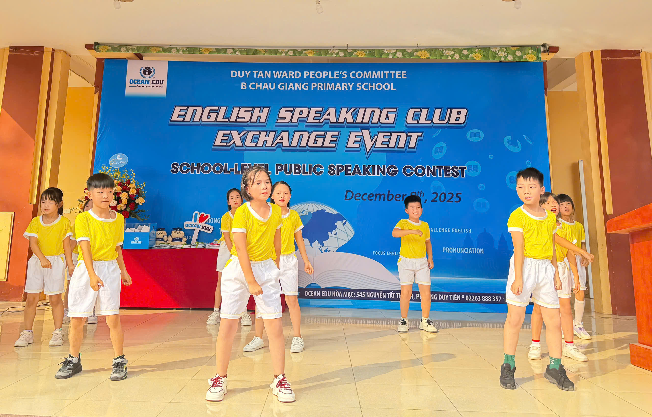 Chiều ngày 08/12/2025, Trường Tiểu học B Châu Giang đã phối hợp với Trung tâm Ngoại ngữ Ocean Edu tổ chức buổi giao lưu Tiếng Anh dành cho học sinh toàn trường. Đây là hoạt động ý nghĩa nhằm tạo sân chơi học tập bổ ích, giúp học sinh có cơ hội rèn luyện và phát triển các kỹ năng Tiếng Anh trong môi trường giao tiếp thực tế.