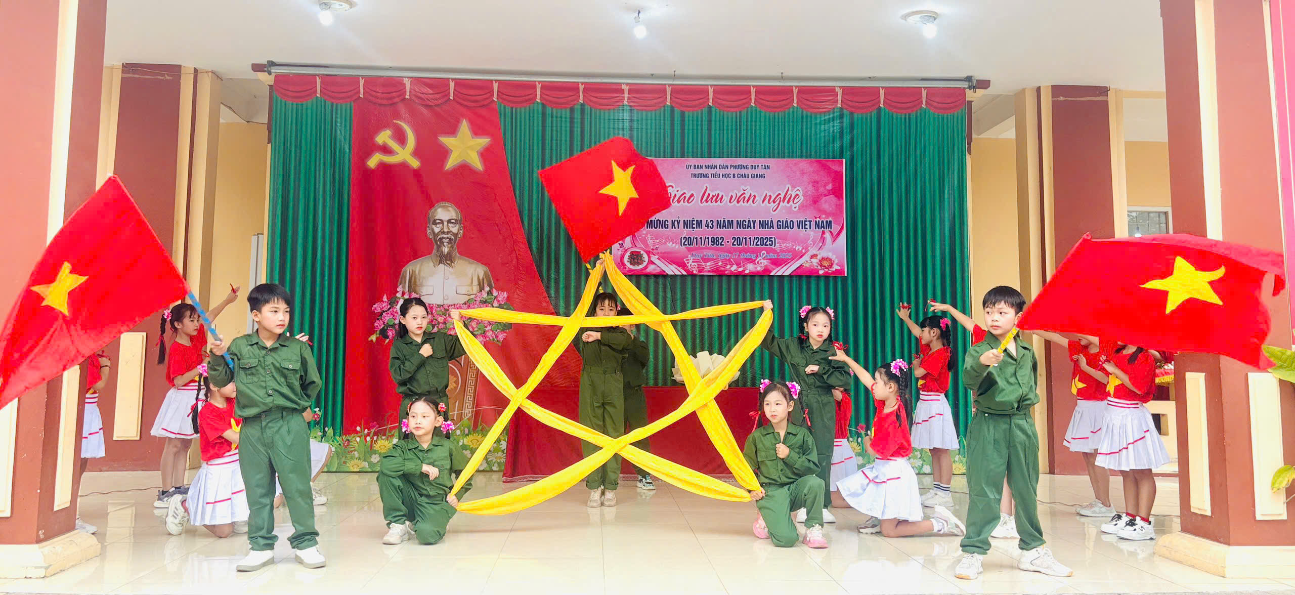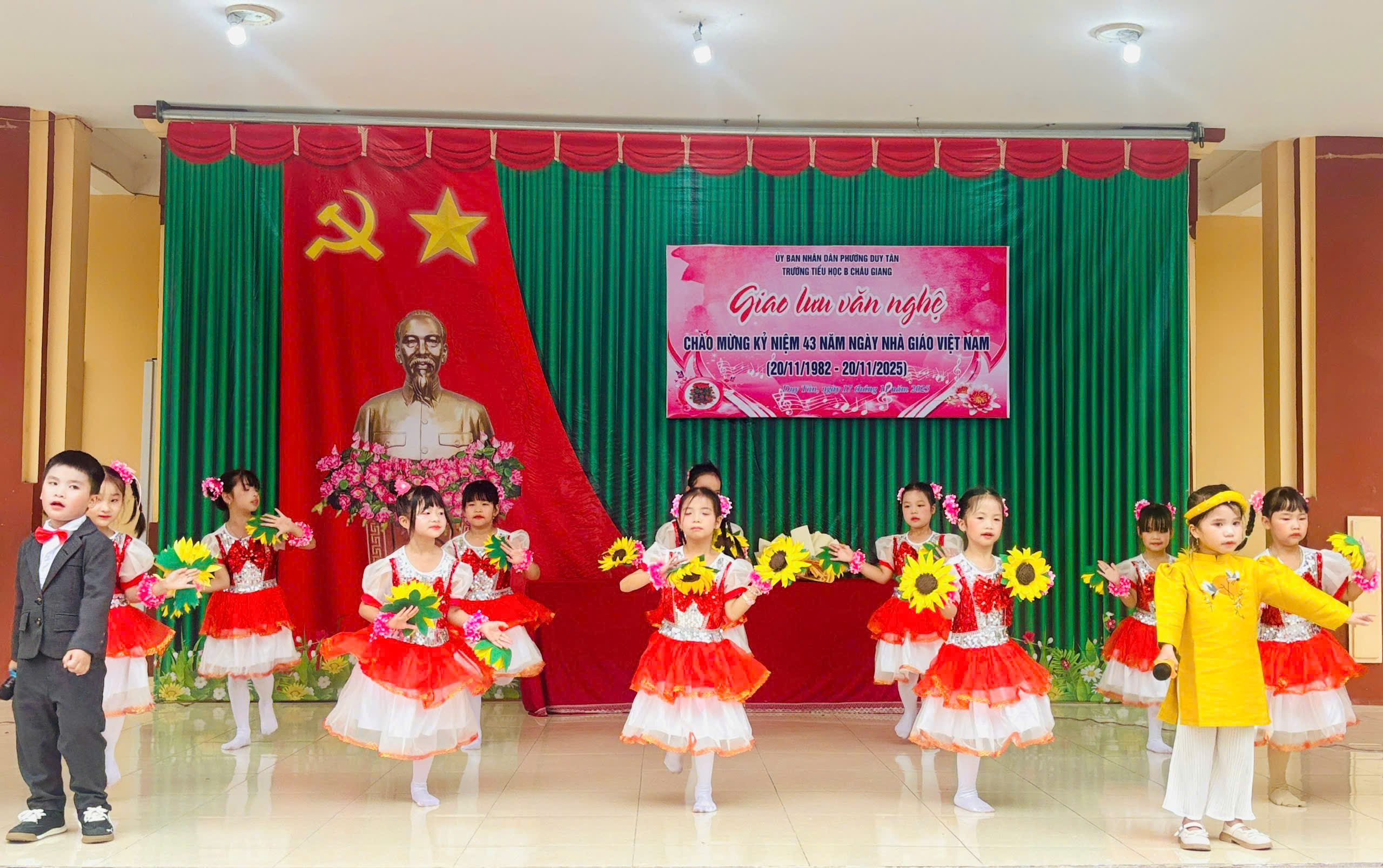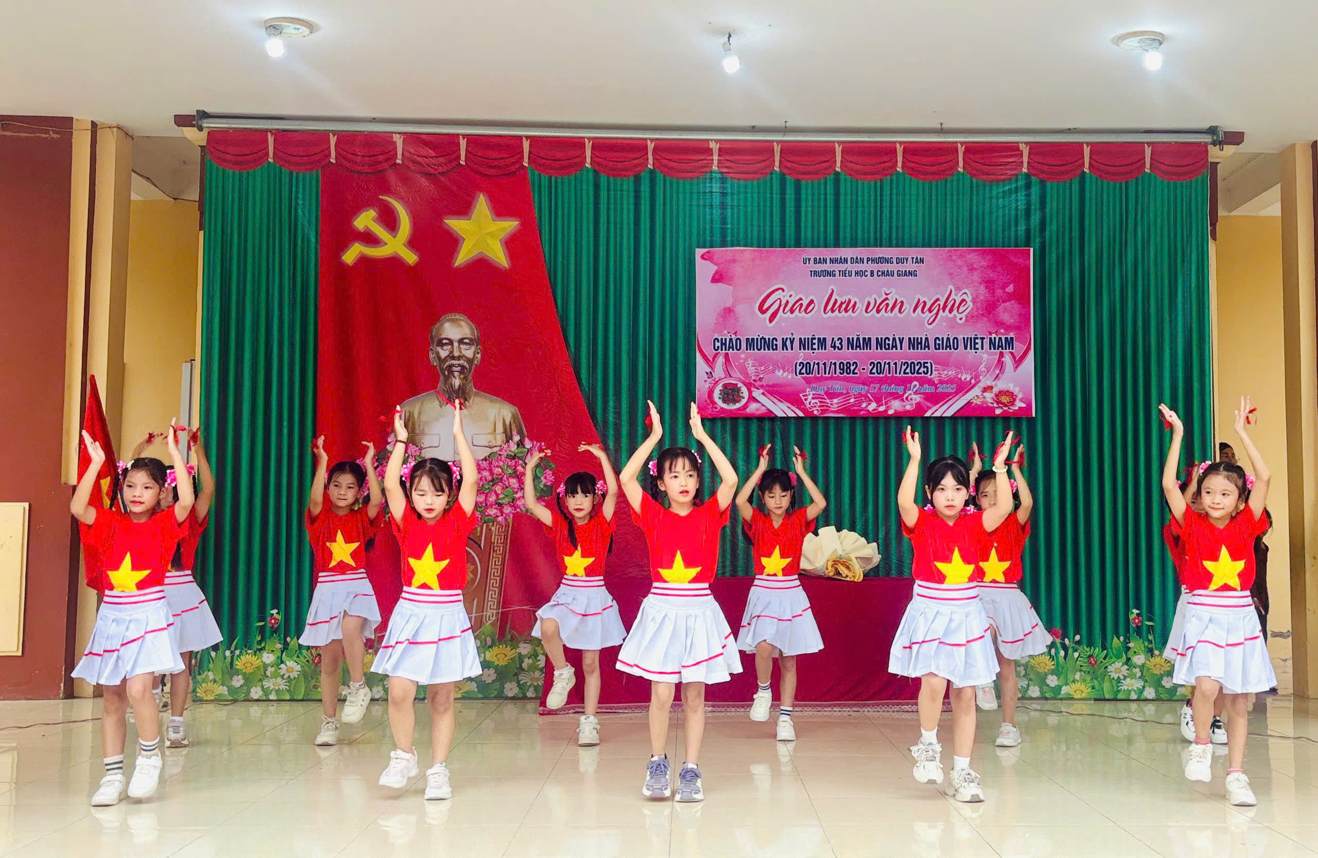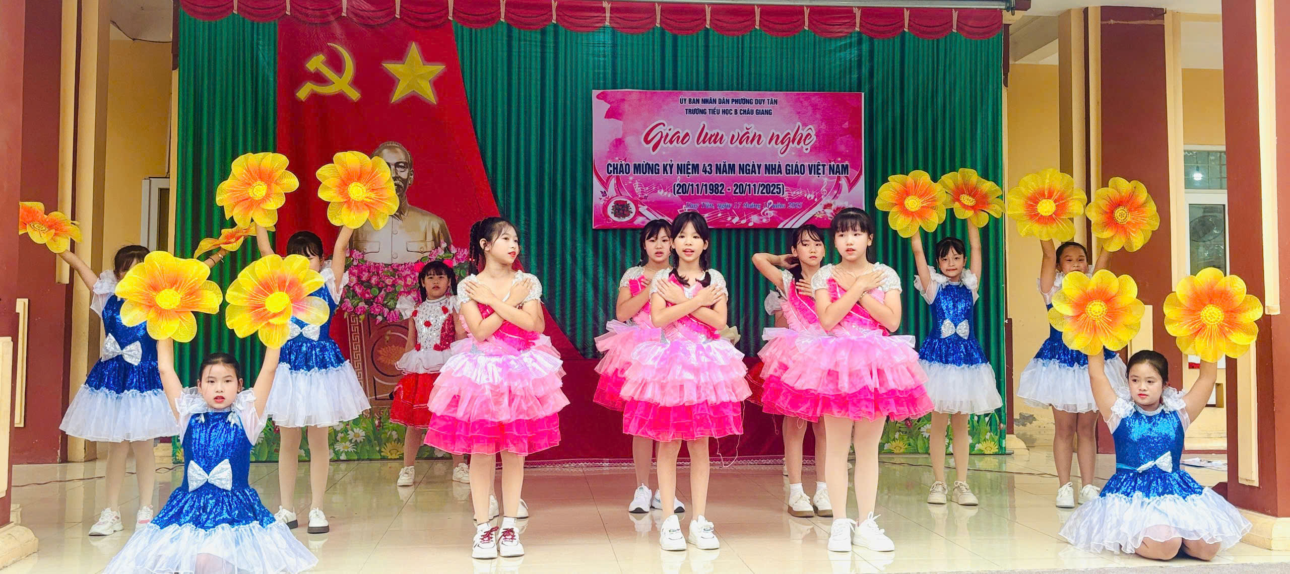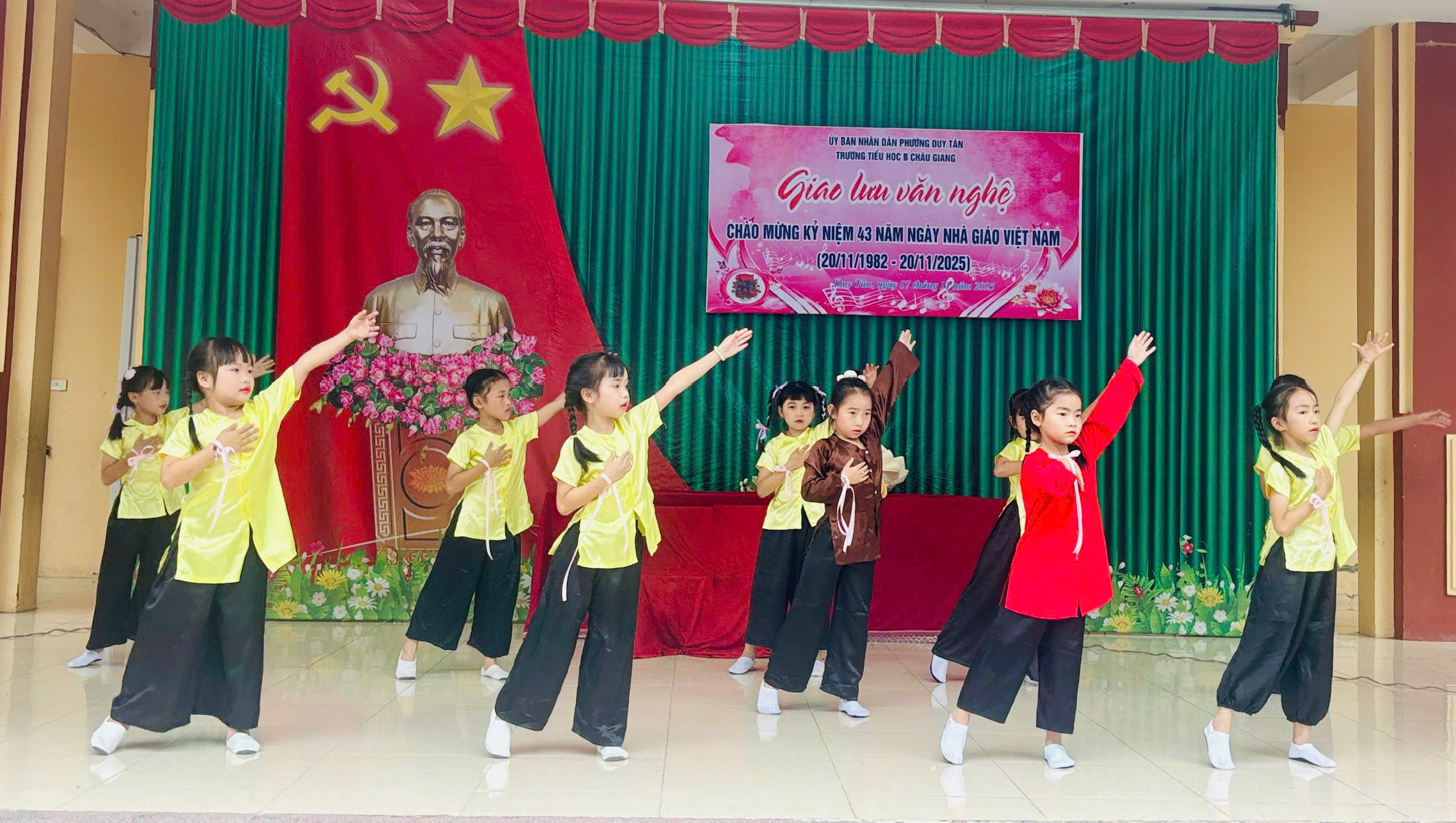Chào mừng 43 năm ngày Nhà giáo Việt Nam ngày 20/11/1982-20/11/2025. Trường Tiểu học B Châu Giang tưng bừng tổ chức giao lưu văn nghệ, thể dục thể thao để học sinh có cơ hội thể hiện năng khiếu và tình cảm của mình tri ân thầy cô. Đặc biệt là các tiết mục văn nghệ trong buổi giao lưu.