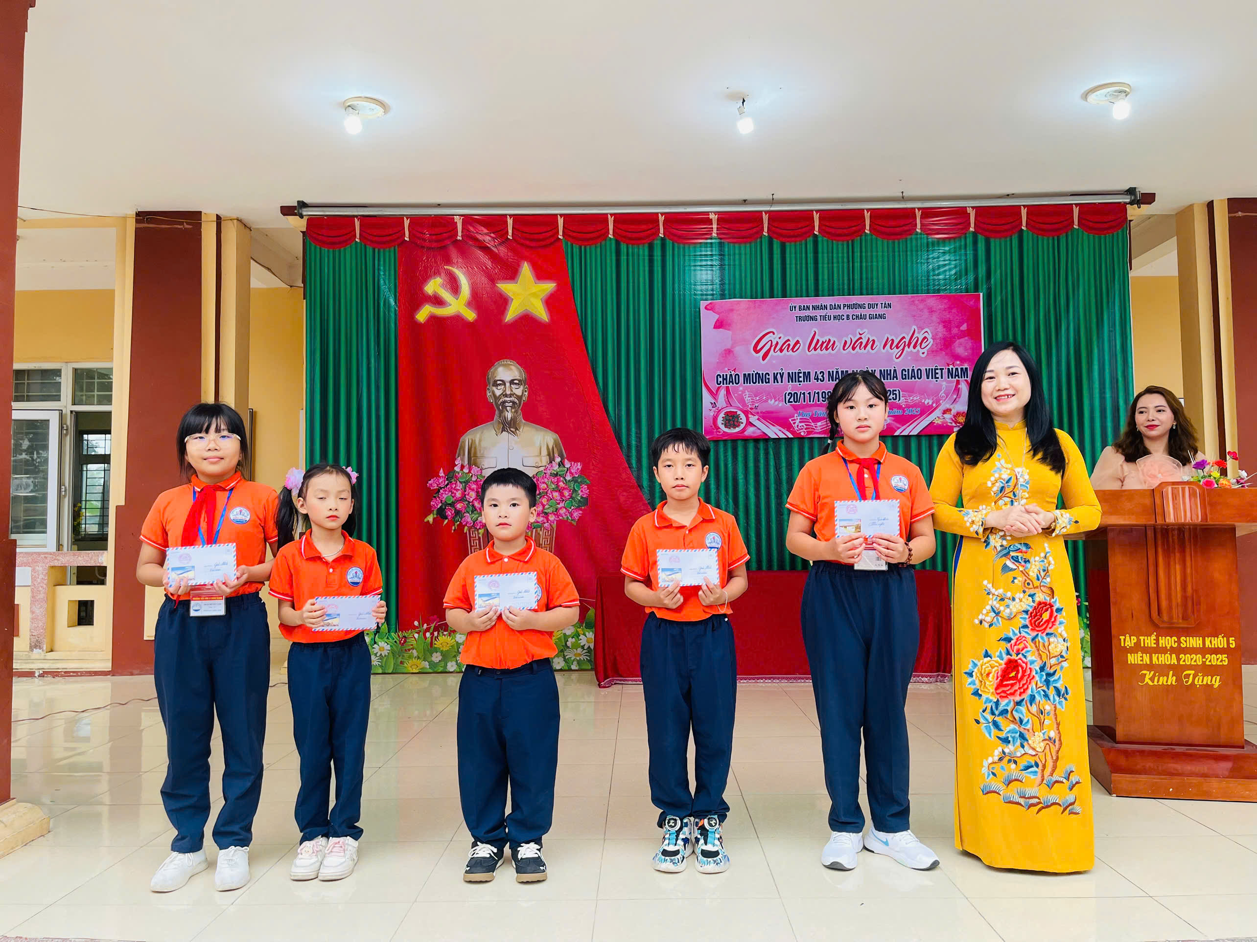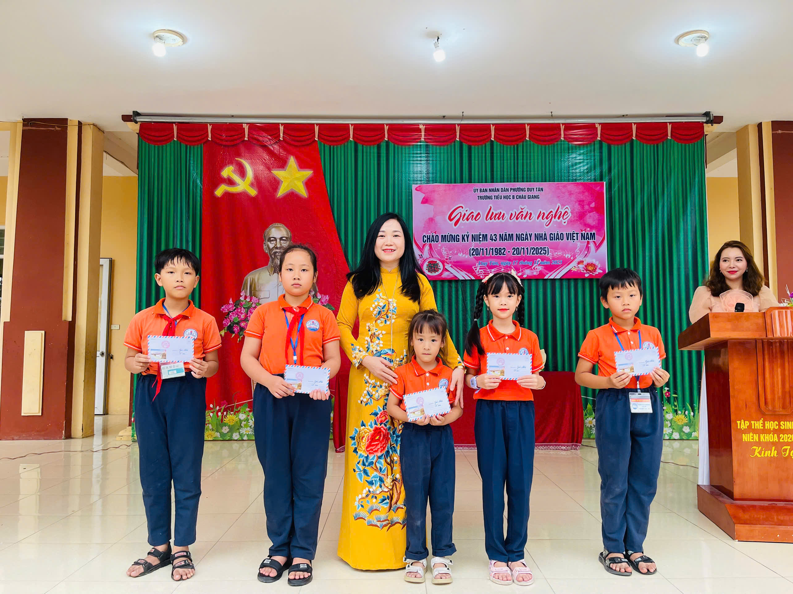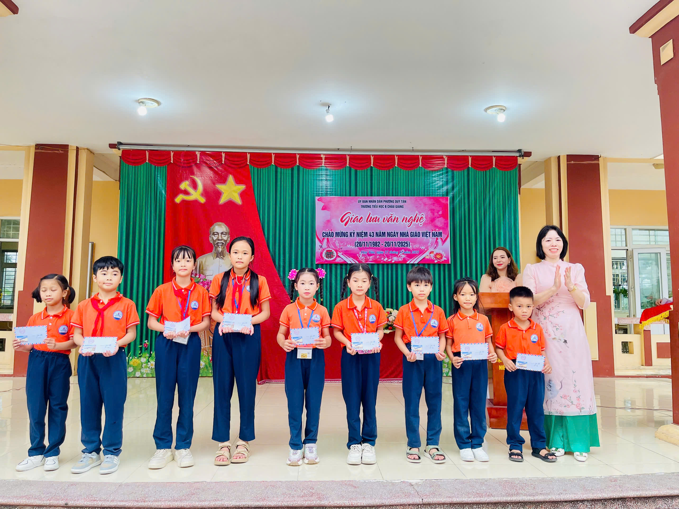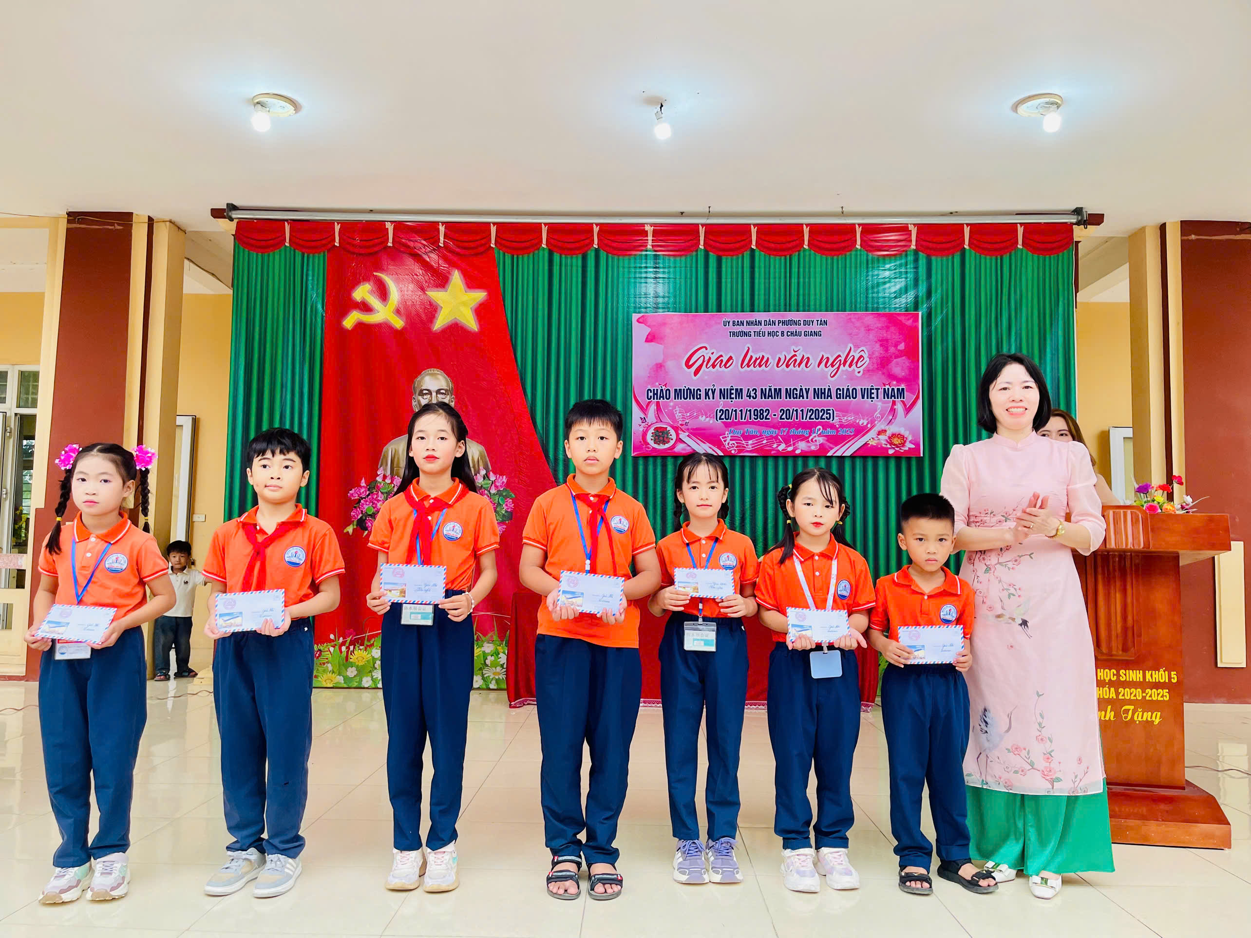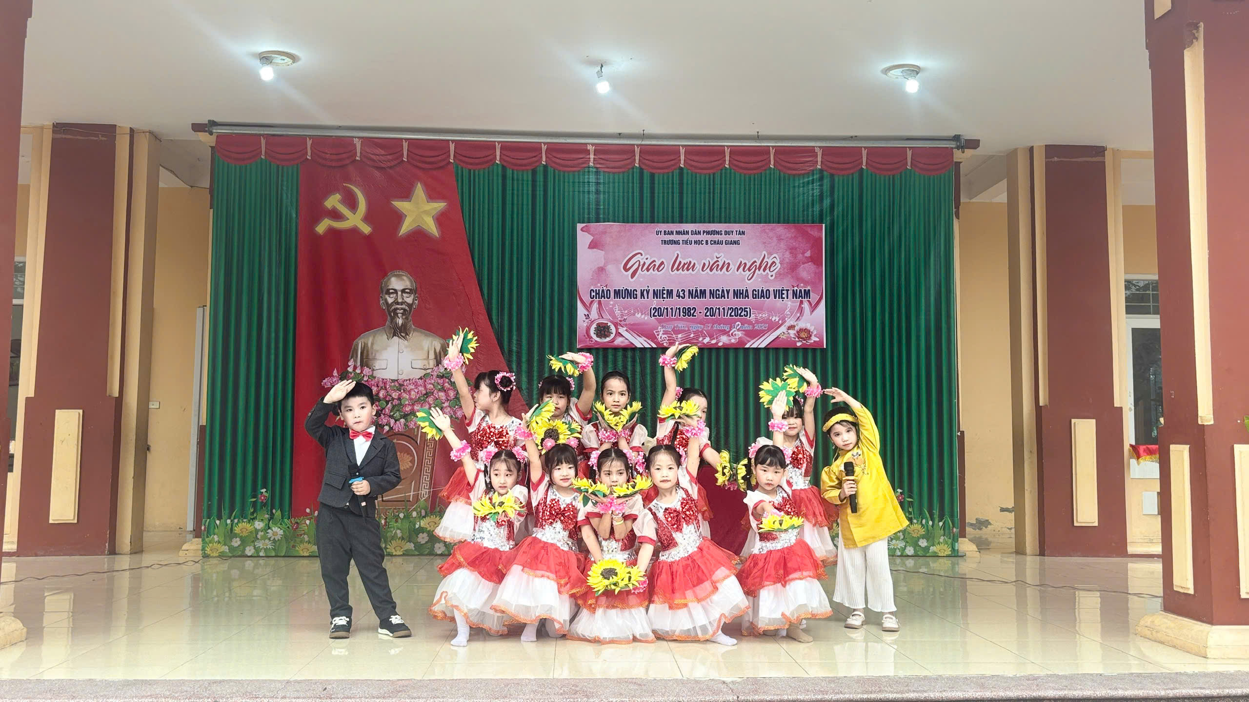 Chào mừng 43 năm ngày Nhà giáo Việt Nam ngày 20/11/1982-20/11/2025. Trường Tiểu học B Châu Giang tưng bừng tổ chức giao lưu văn nghệ, thể dục thể thao để học sinh có cơ hội thể hiện năng khiếu và tình cảm của mình tri ân thầy cô. Đặc biệt là các tiết mục văn nghệ trong buổi giao lưu.