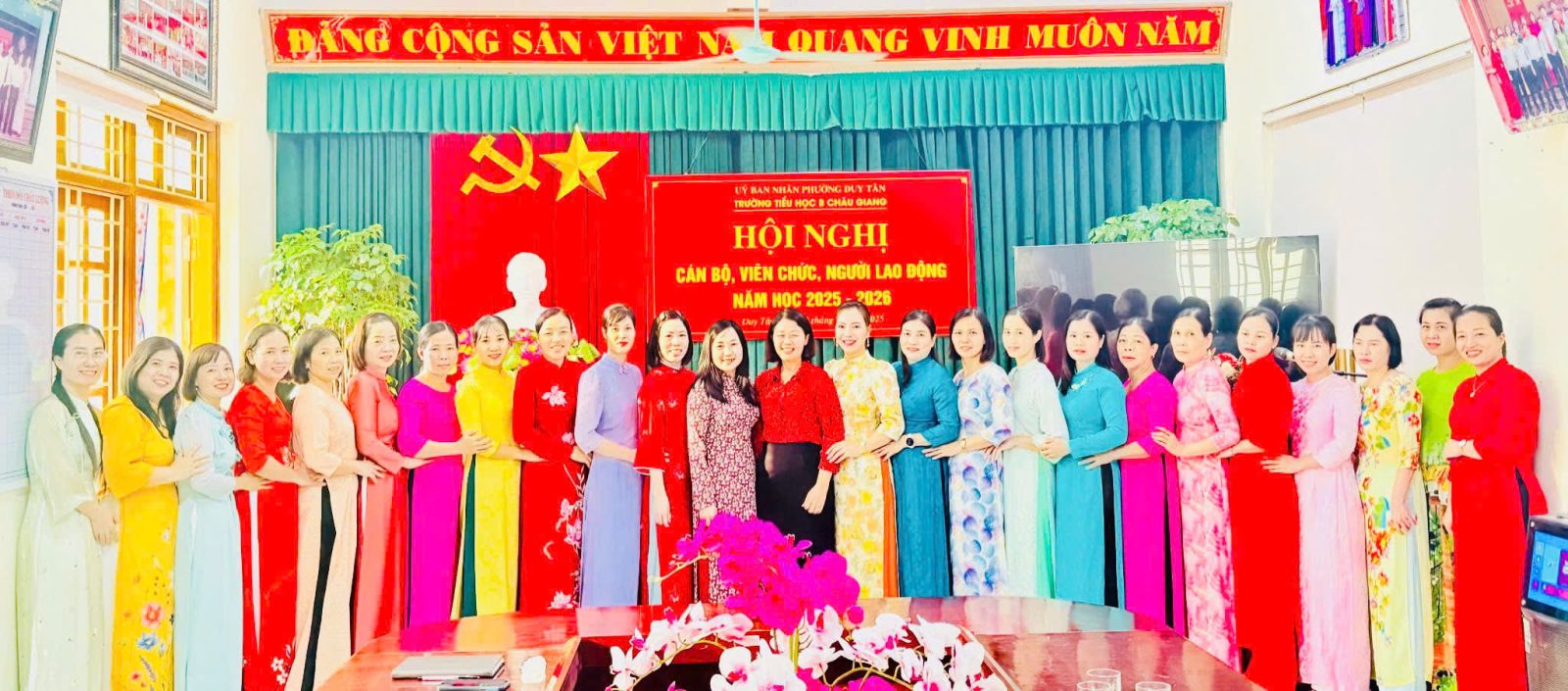 Hội nghị cán bộ, viên chức Trường tiểu học B Châu Giang đã thành công tốt đẹp với sự đồng thuận và nhất trí cao của toàn thể cán bộ, viên chức trong nhà trường. Hội nghị đã thực sự phát huy được sức mạnh tập thể, tính sáng tạo của mỗi cán bộ, viên chức. Tập thể CB, viên chức trong nhà trường quyết tâm vượt khó, hoàn thành xuất sắc nhiệm vụ năm học 2025-2026.