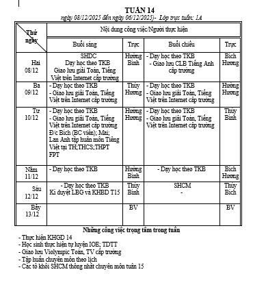 LỊCH CÔNG TÁC TUẦN 14