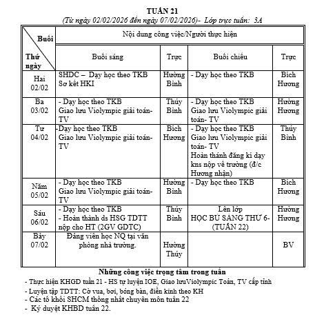 LỊCH CÔNG TÁC TUẦN 21