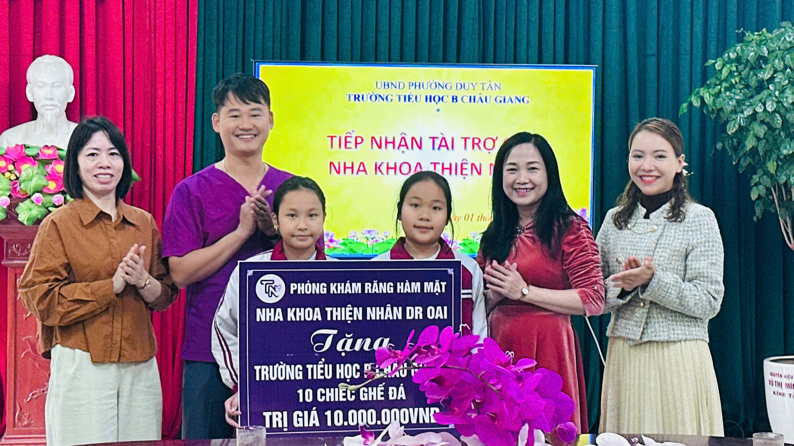 NHA KHOA THIỆN NHÂN – TRAO TẶNG GHẾ ĐÁ CHO TRƯỜNG TIỂU HỌC B CHÂU GIANG