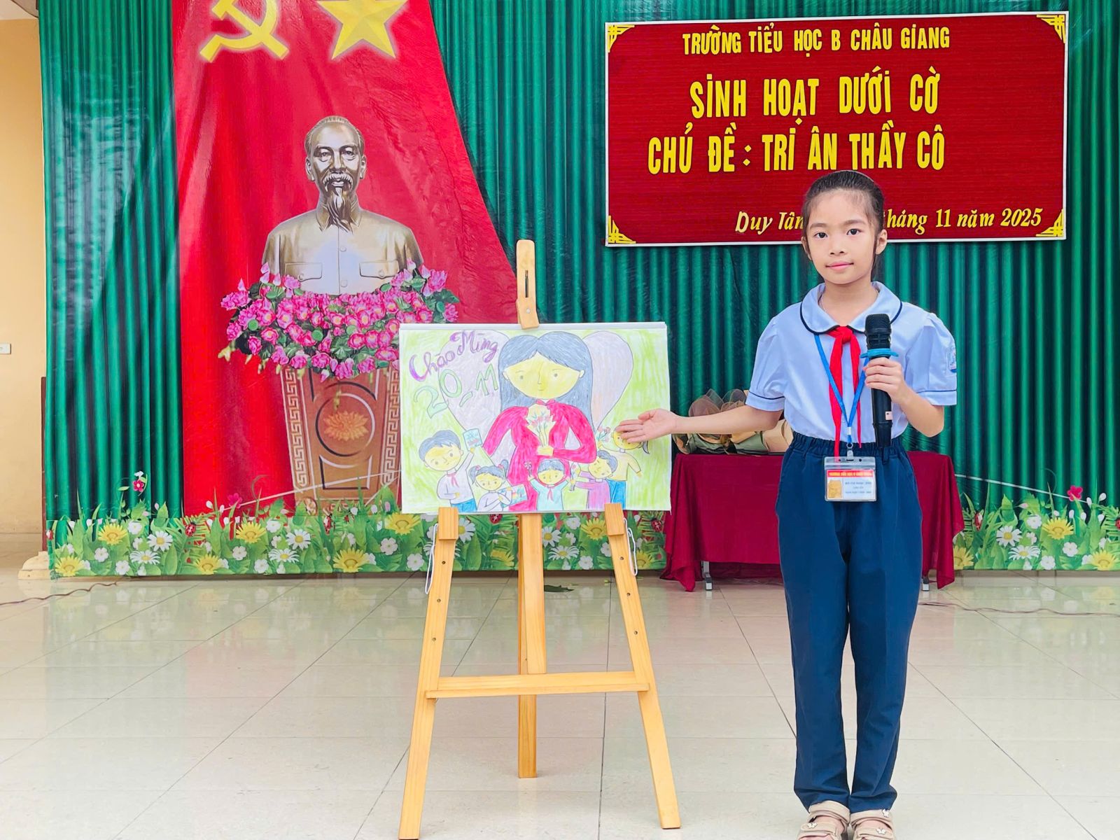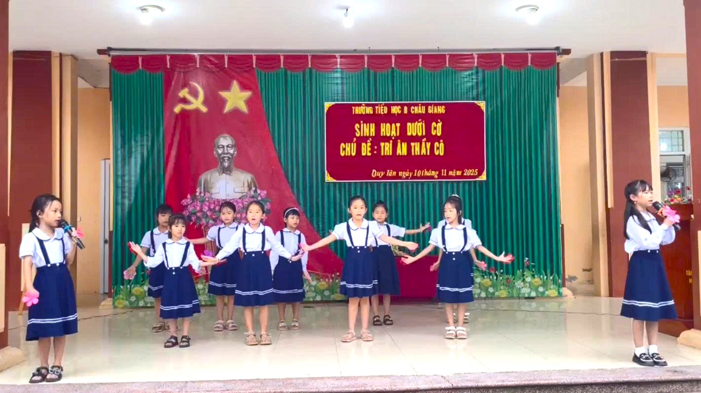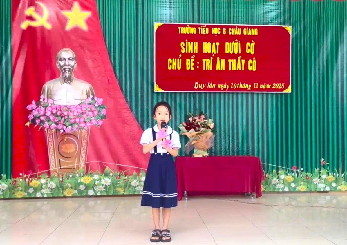 Hòa chung không khí tưng bừng, hứng khởi chào mừng ngày Nhà giáo Việt Nam 20/11, sáng ngày 10/11/2025, cô Trịnh Thị Phương Thanh – Tổng phụ trách Đội đã phối hợp cùng lớp 2A tổ chức tiết sinh hoạt dưới cờ với chủ đề: “Tri ân thầy cô”.