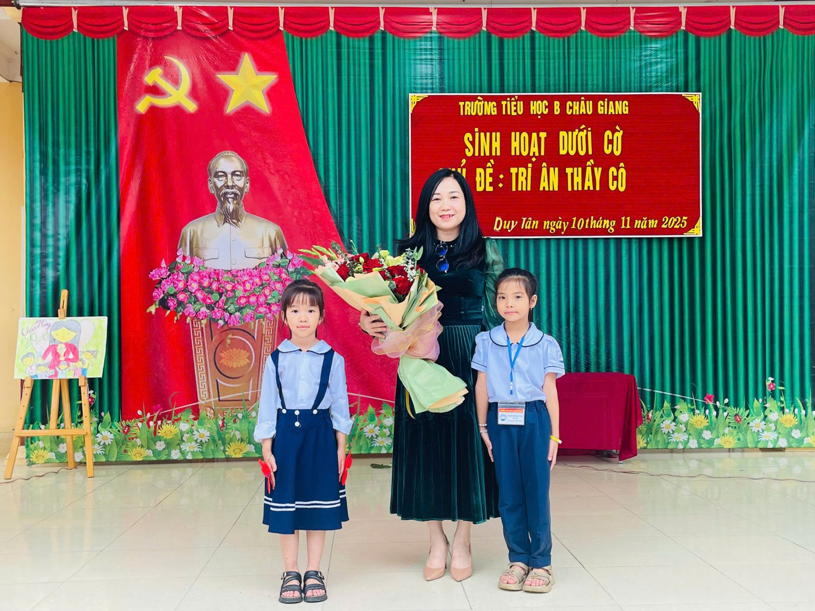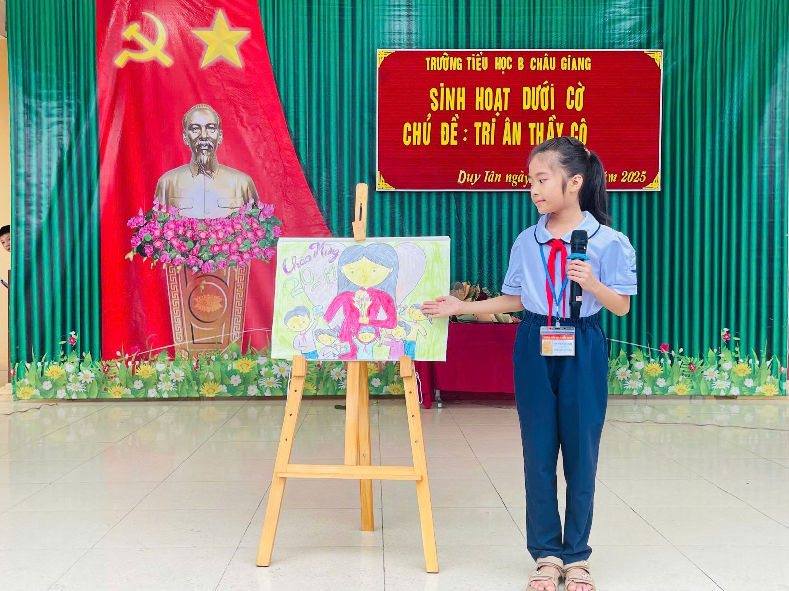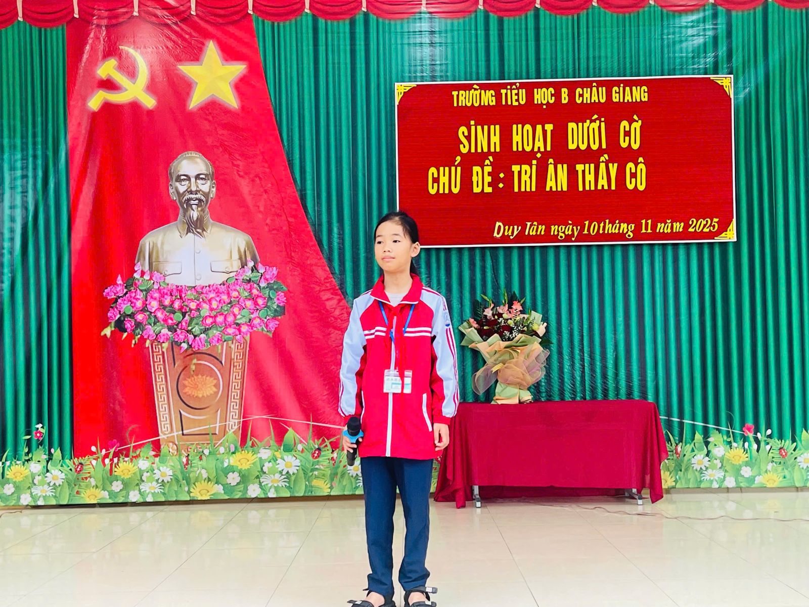 Hòa chung không khí tưng bừng, hứng khởi chào mừng ngày Nhà giáo Việt Nam 20/11, sáng ngày 10/11/2025, cô Trịnh Thị Phương Thanh – Tổng phụ trách Đội đã phối hợp cùng lớp 2A tổ chức tiết sinh hoạt dưới cờ với chủ đề: “Tri ân thầy cô”.