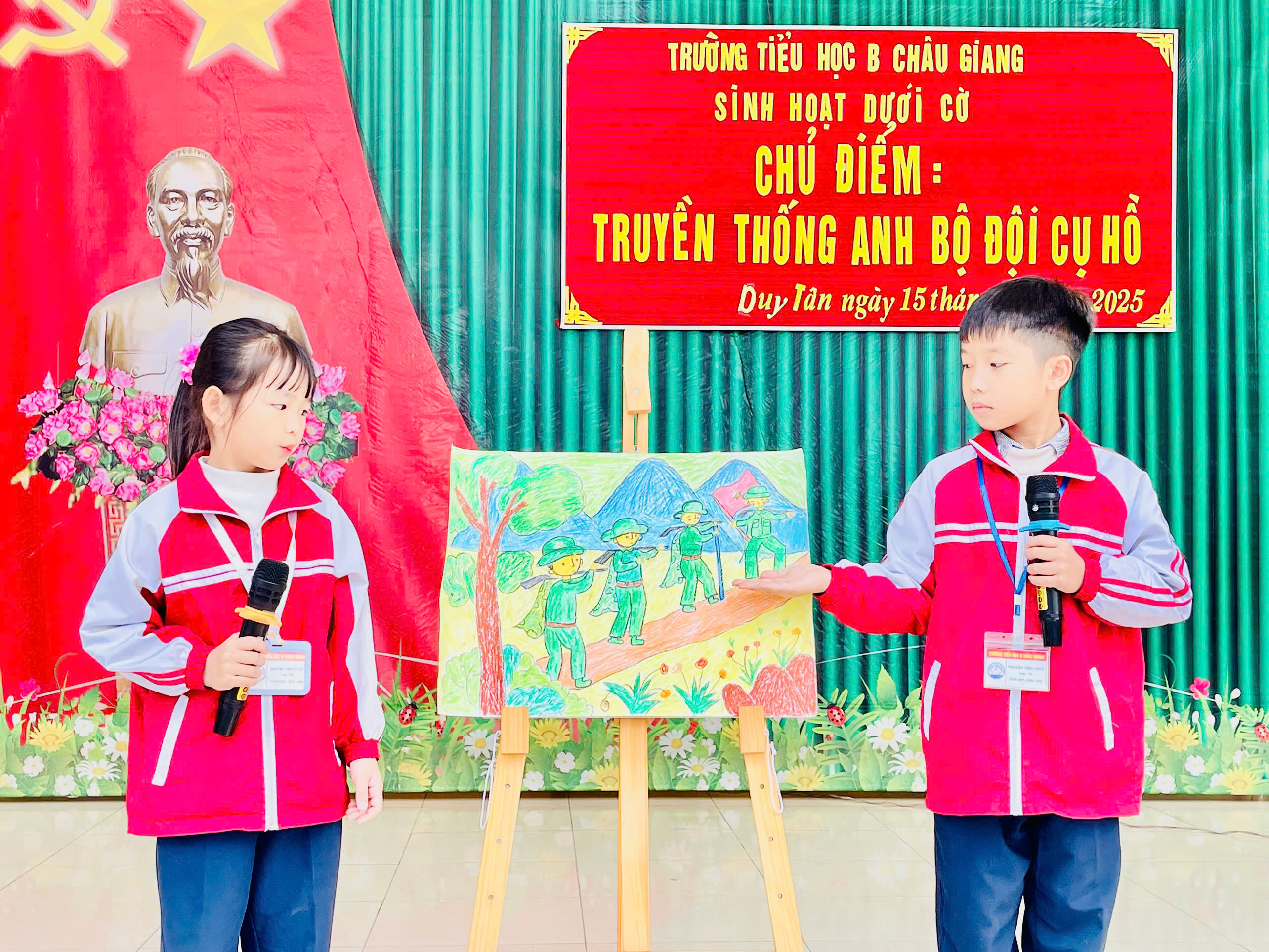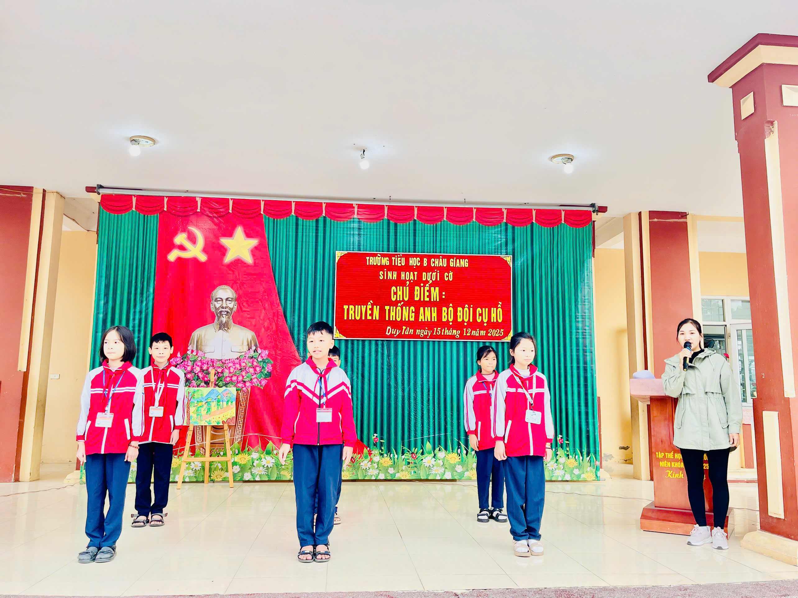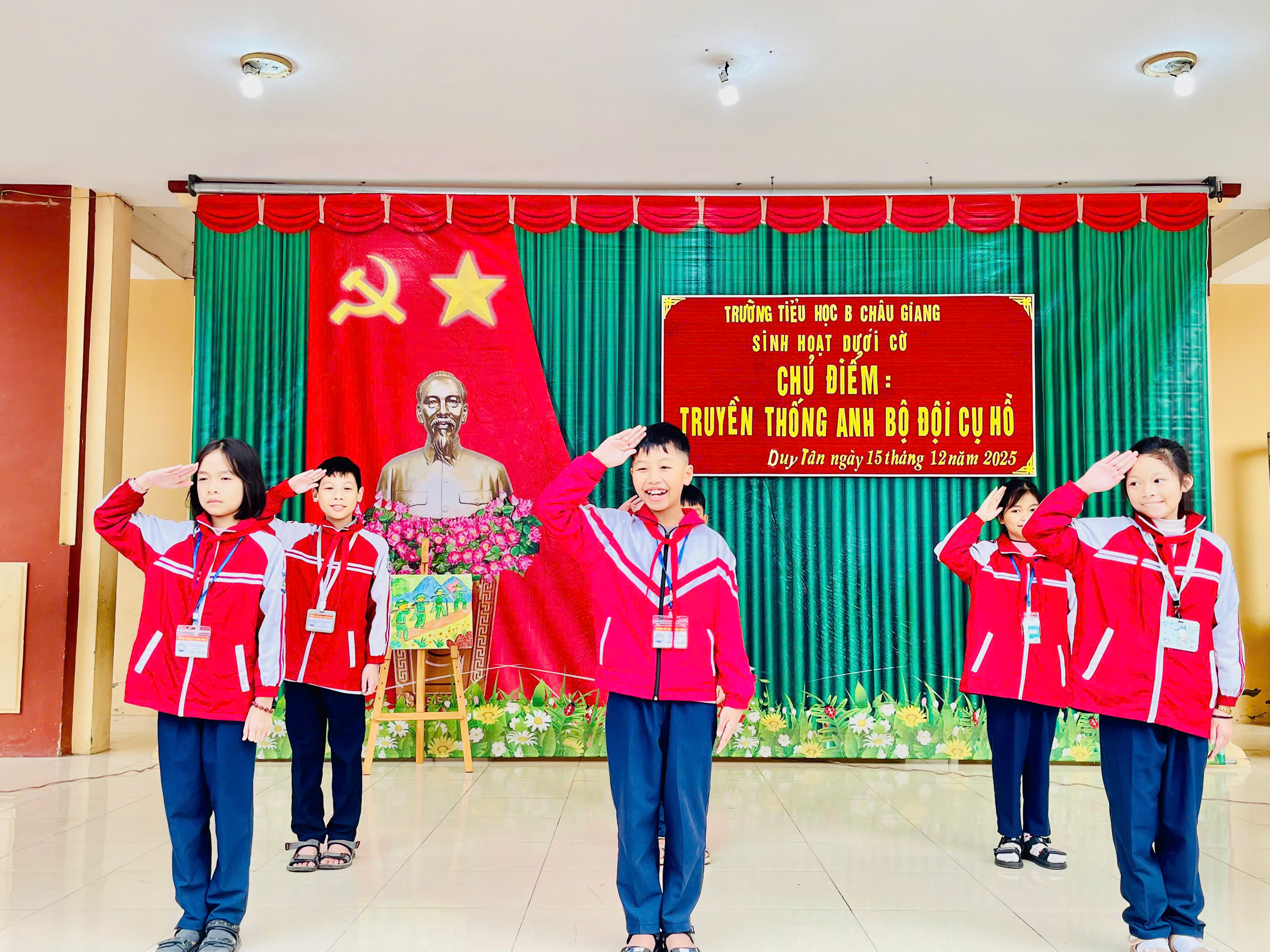 Hòa chung trong không khí của cả nước chào mừng 81 năm ngày thành lập Quân đội nhân dân Việt Nam (22/12/1944 – 22/12/2025), kỷ niệm 53 năm chiến thắng Điện Biên Phủ trên không và 36 năm ngày hội Quốc phòng toàn dân (22/12/1989 – 22/12/2025). Sáng ngày 15/12/2025, trường Tiểu học B Châu Giang tổ chức buổi sinh hoạt dưới cờ với chủ điểm: “Truyền thống Anh bộ đội cụ Hồ”.
